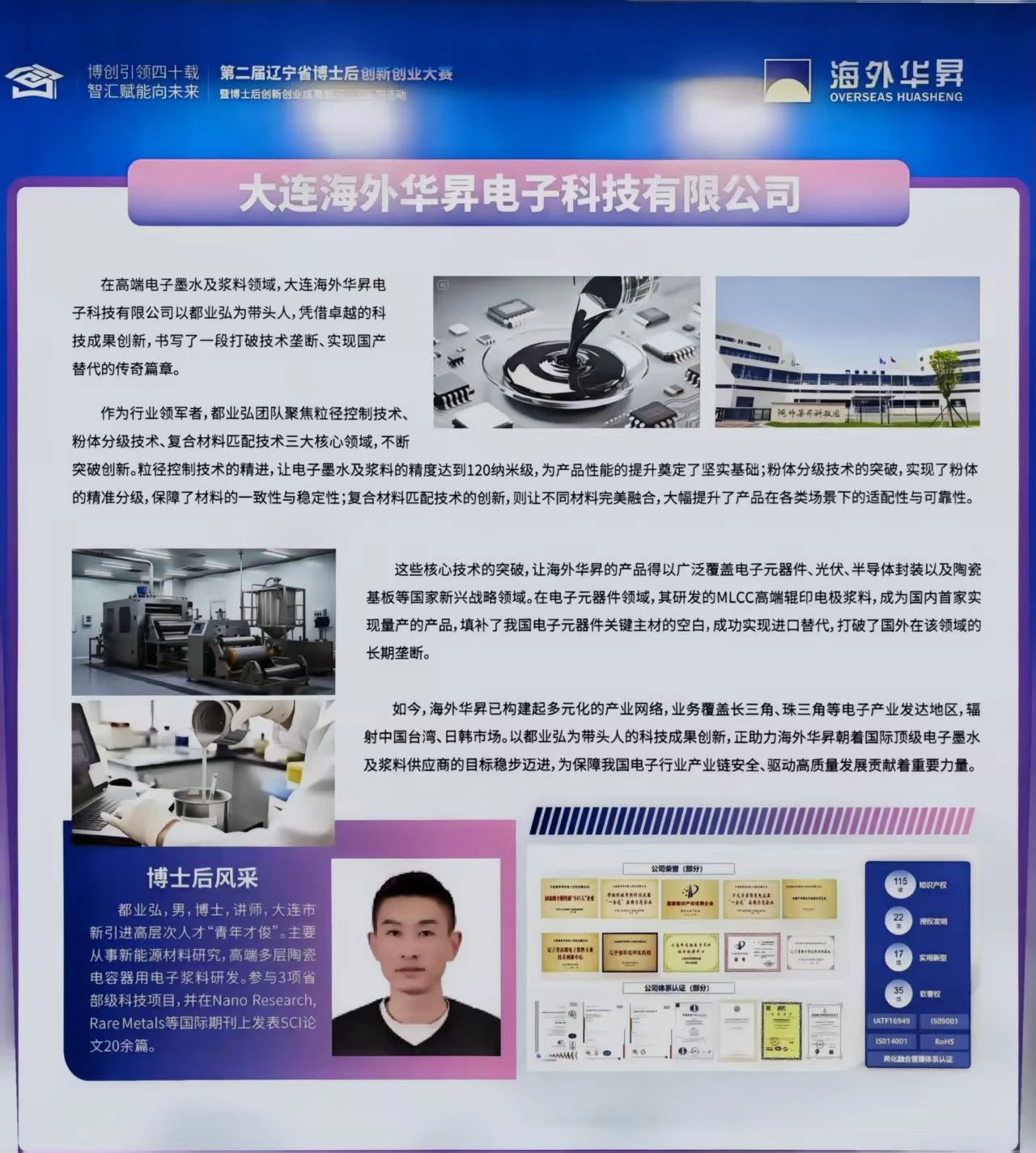 大連海外華昇電子科技有限公司(簡稱“海外華昇”)于2016年4月成立,注冊資本7940萬元,是一家專業(yè)從事高精度、微米/納米級電子漿料研發(fā)、生產(chǎn)和銷售的高新技術(shù)企業(yè)。目前,海外華昇已完成實(shí)際投資超2億元,建成大連總公司、無錫子公司、東莞分公司、上海子公司(上海正銀)、嘉興子公司(浙江納沛)、肇慶子公司、淮北子公司和日本子公司,擁有國際領(lǐng)先的電子漿料精益生產(chǎn)線,設(shè)備400臺(套),設(shè)計(jì)年產(chǎn)能1000噸,設(shè)計(jì)產(chǎn)值30億元。